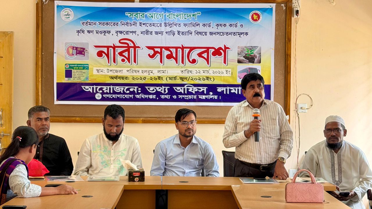 বৃহস্পতিবার (১২ মার্চ ২০২৬) উপজেলা পরিষদ সভাকক্ষে তথ্য অফিস, লামার আয়োজনে “সবার আগে বাংলাদেশ” শীর্ষক এ জনসচেতনতামূলক নারী সমাবেশ অনুষ্ঠিত হয়।