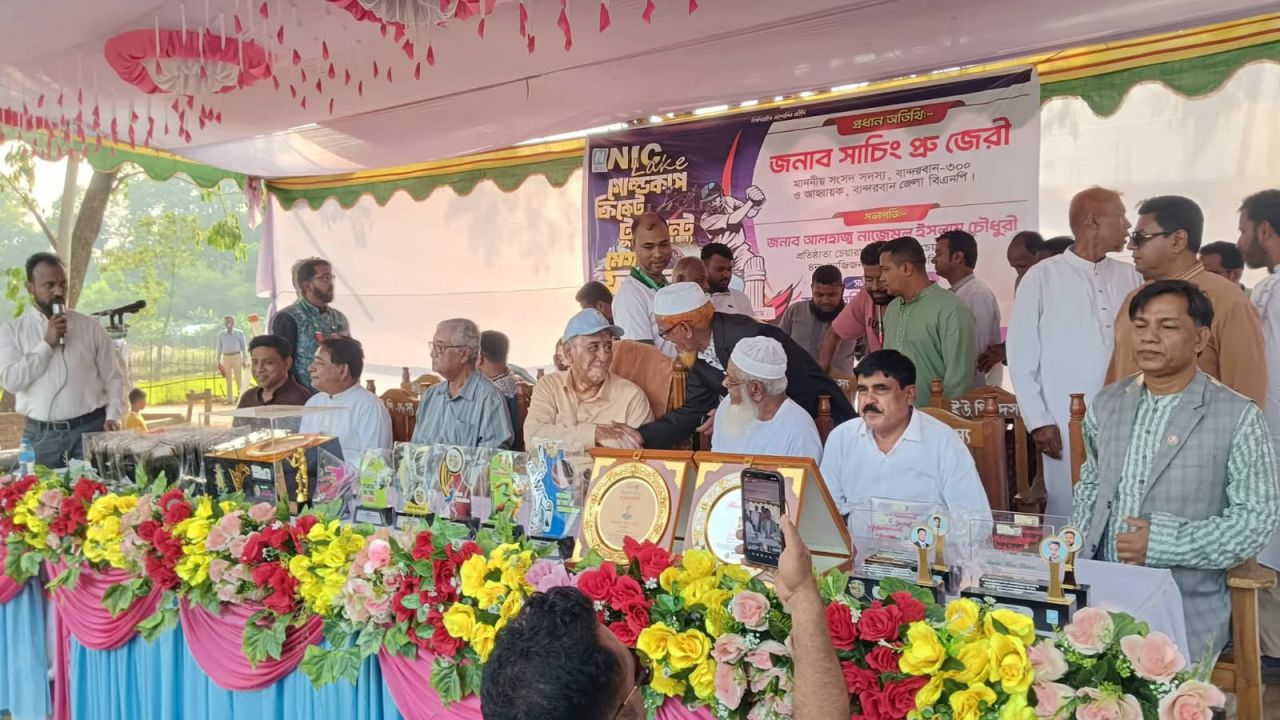 বান্দরবানের লামা উপজেলার আজিজনগর এলাকায় উৎসবমুখর পরিবেশে অনুষ্ঠিত হয়ে গেল ‘এনআইসি লেক গোল্ড কাপ ক্রিকেট টুর্নামেন্ট-২০২৬’-এর জমজমাট ফাইনাল খেলা। মাঠজুড়ে দর্শকদের উপচে পড়া ভিড় আর ক্রীড়াপ্রেমীদের বাঁধভাঙ্গা উচ্ছ্বাসের মধ্য দিয়ে এই টুর্নামেন্টের পর্দা নামলো।